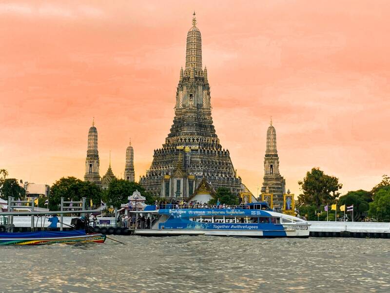 Bij de juiste pier aangekomen kochten we een kaartje voor de overtocht naar Wat Arun.