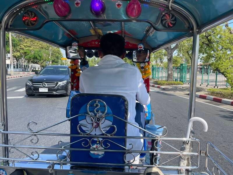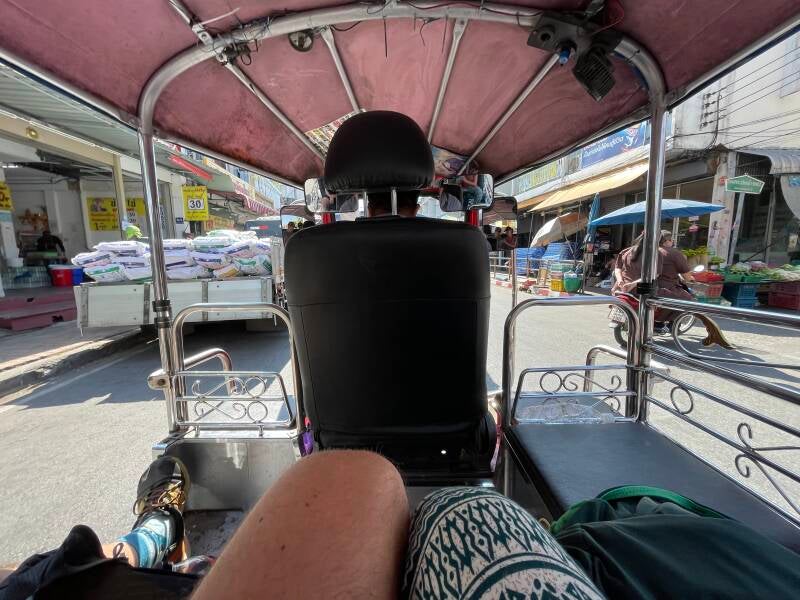 Hij hield voor ons een tuktuk aan, vertelde waar wij heen moesten en onderhandelde voor ons dat het 150 bath (€4,-) zou kosten.