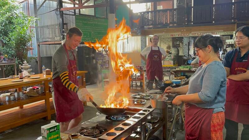 De tour was inclusief eten en drinken. Twee keer kregen we water (meer dan genoeg) en ergens in die wijk in de buurt van de floating market kwamen we bij een klein huisje aan waar er voor ons was gekookt. Het eten was er verrukkelijk. Casper en ik spraken veel met een man genaamd Willem. Hij heeft 3 weken in een stilte tempel gezeten net onder Chiang Mai. We hadden het over de beleving, over hoe je de lessen van reizen moeilijk in het “echte” leven kan toepassen. Over de manier van denken van Nederlanders vs Thaise mensen (of andere culturen). We hadden een mooi gesprek.