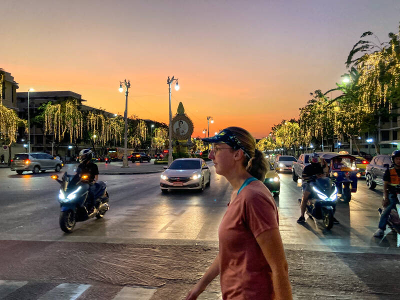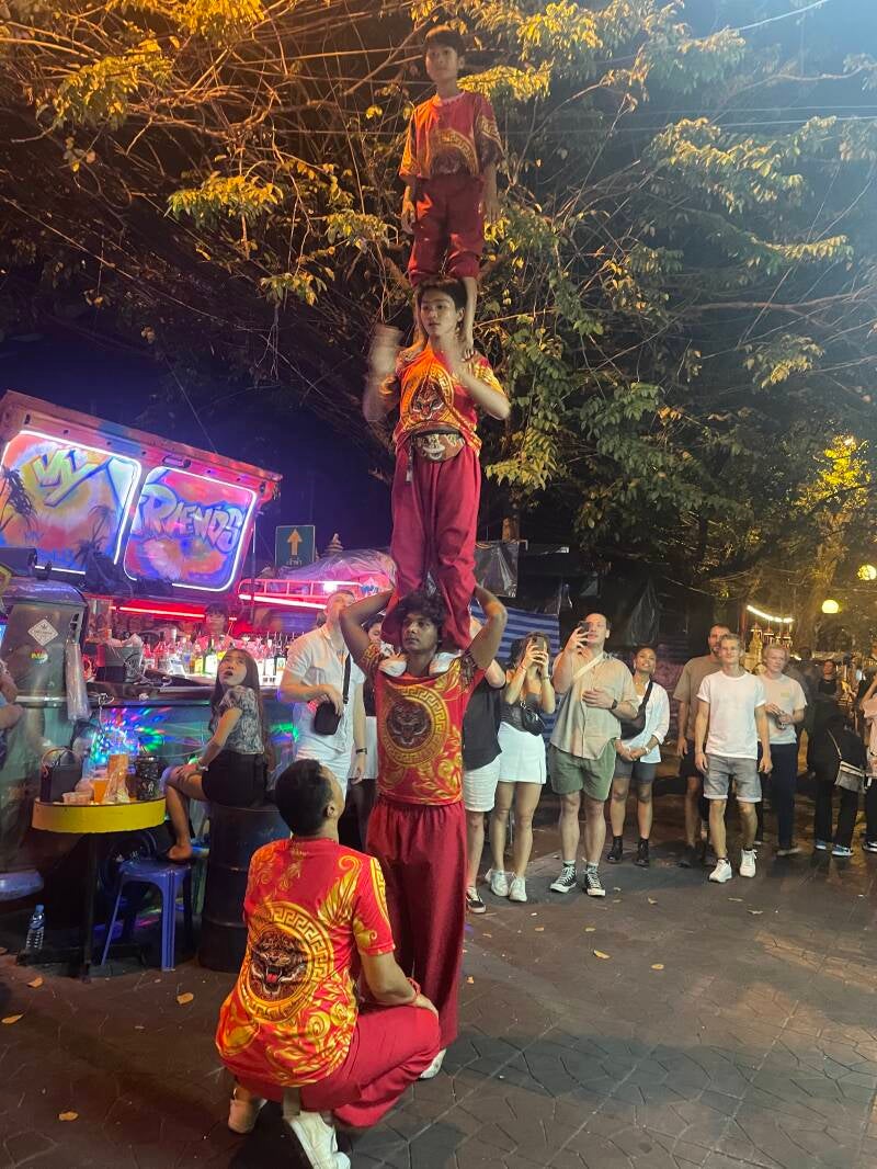De wilde beesten tijdens deze beton-safari zagen was erg uiteenlopend: tuktuks, scooters, taxi’s, bussen. Toeristen die niet door hebben dat ze een grote backpack om hebben en je daarmee bijna van de stoep afslingeren. Gezinnen die de weg blokkeren door te stoppen en te kijken bij een kraampje. De vloggers die met een selfie stick lopen te zwaaien en regelmatig bijna er mee slaan.