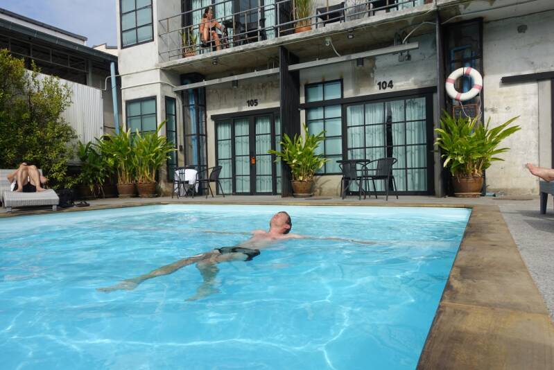 We aten het ontbijt bij het hotel en gingen vervolgens pootje baden bij het zwembad. Het water zag er niet super schoon uit, dus vonden we met alleen onze benen erin voldoende.