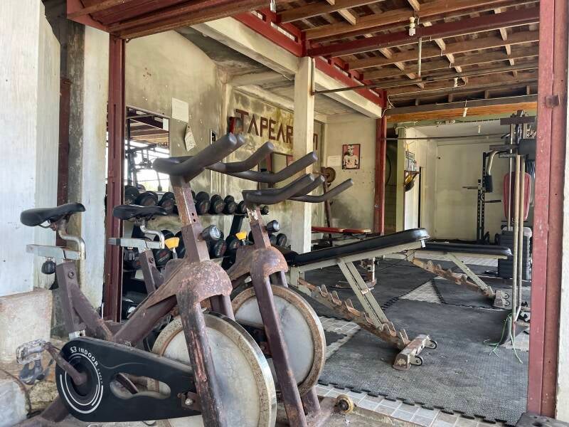 We zagen op Google maps een andere pier en liepen erheen. Onderweg werden we afgeleid door een restaurantje. Dit restaurantje had de buren uitgekocht en hadden daardoor 1 keuken met 2 ruimtes.