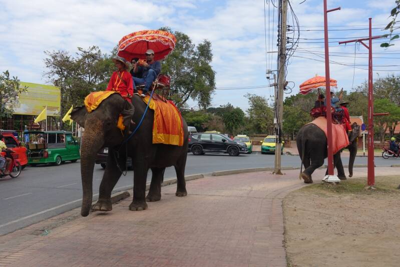 Om 10u20 ging onze trein naar Ayutthaya. We hadden kaartjes voor 3e klas. Stoelen stonden op het kaartje en de been ruimte was beperkt. Ik zat op het hoekje, dus kon m’n benen het gangpad in gooien. De 1,5u in de trein vloog voorbij. Rustig lezen in m’n boek. Af en toe op kijken om Bangkok in te ruilen voor rijst velden. Sneller dan verwacht kwamen we aan.