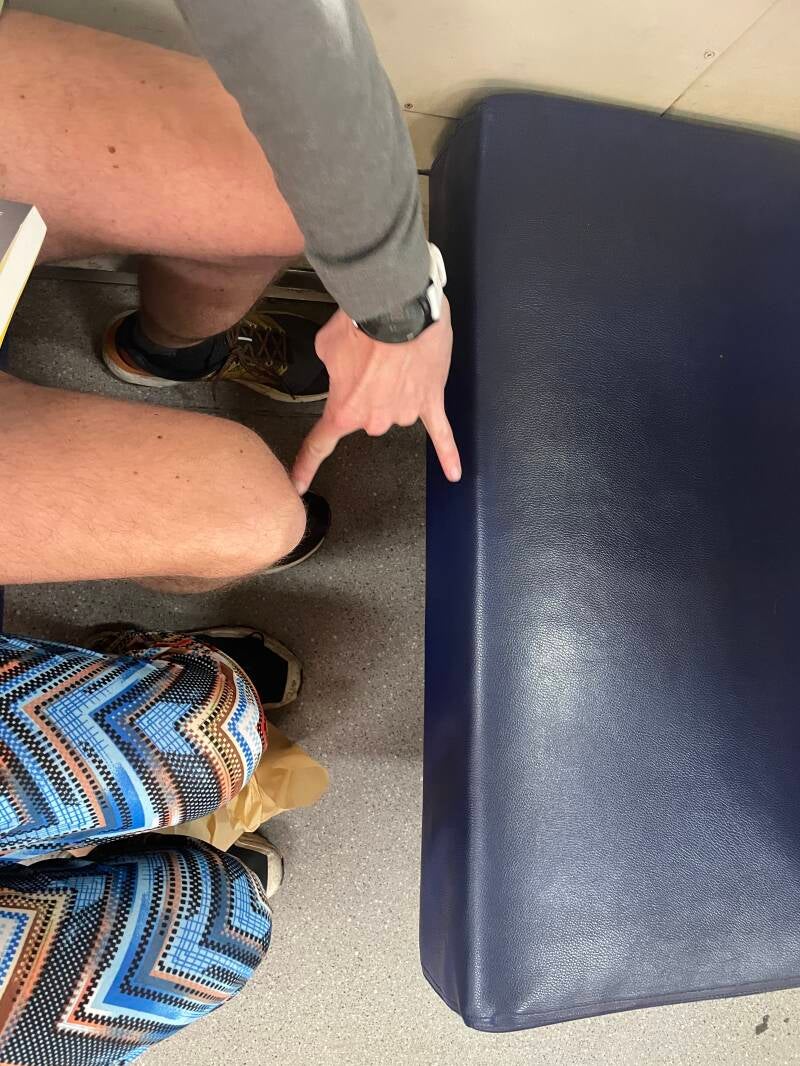 Hij vertelde dat in de zak waar “towel” op staat een deken zit. Waar ik de hele nacht kou heb geleden, lag hij comfortabel onder de deken. We keken naar het uitzicht en wachtte tot de wc vrij kwam.