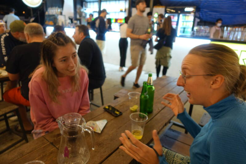De serveerster kwam langs en vertelde hoe we de kaart konden zien. Via het locale WiFi konden we de QR code scannen. Aangezien we bijna naar huis gaan moeten we nu letten op het budget en hebben we voor alle komende activiteiten potjes gemaakt. Cocktails vielen binnen het budget. Toch kozen Casper en ik voor de goedkopere mocktails (zonder alcohol).